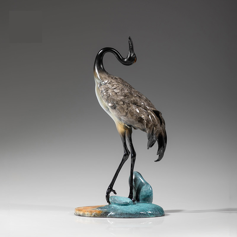 Bronze crane figurine for home decoration and craftwork
