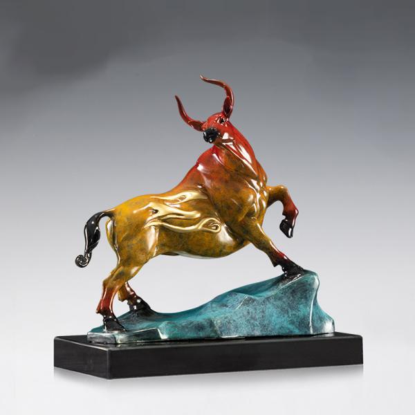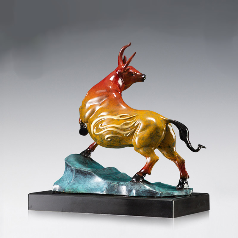 Copper Art Workshop "Good Fortune Ahead" Yellow Brass Ox Statue TV Stand Office Desk Curio Cabinet Wine Cabinet Decorati