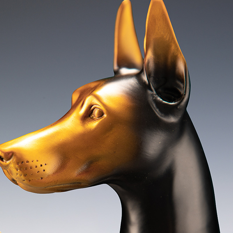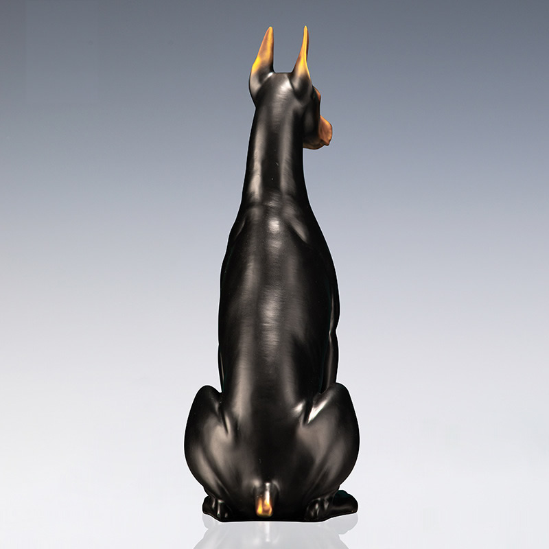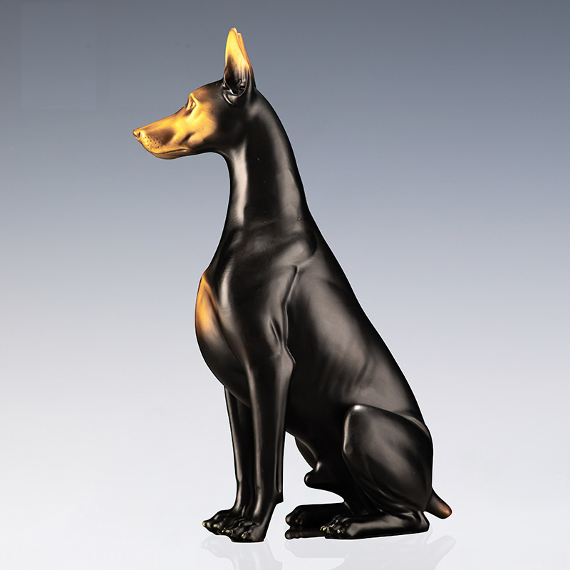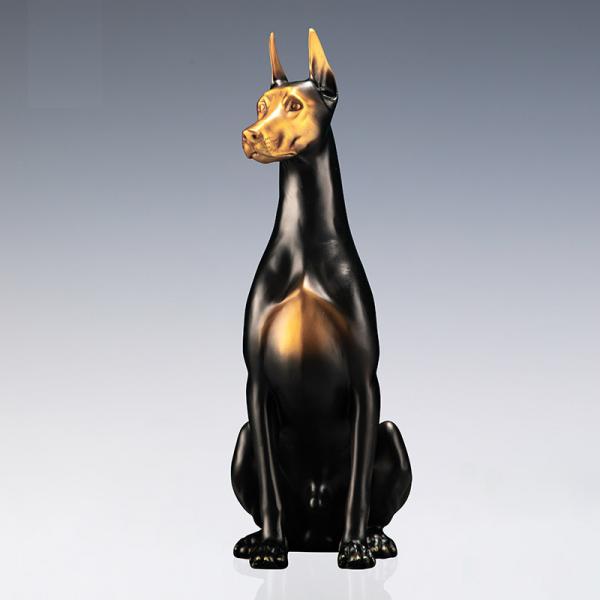 Standing and sitting Doberman pinscher copper figurine, Doberman pinscher colorful copper handicraft, home interior entr