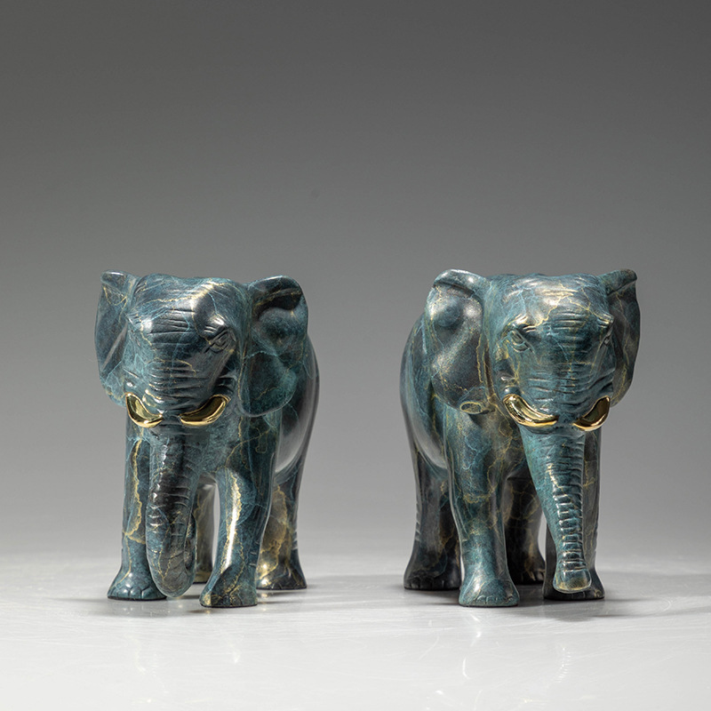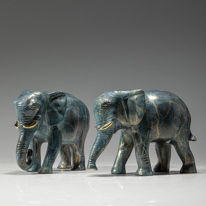 Rich and auspicious golden bronze elephant copper figurine, water-absorbing bronze elephant, copper handicraft, office a