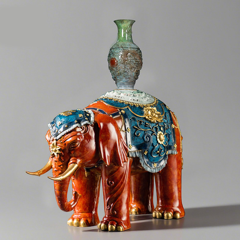 Rich and auspicious elephant colored bronze art handicrafts, decorative items for the living room of a villa, hotel lobb