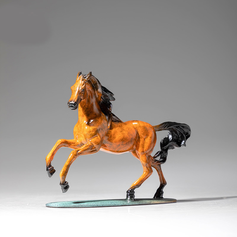 Bronze horse figurine for office, living room and study mantelpiece, yellow copper handicraft figurine
