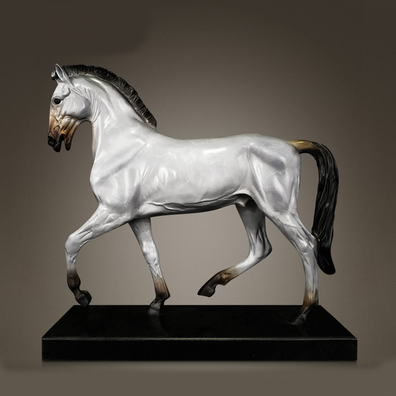 Grey horse and white horse bronze decorative piece, new Chinese style home, living room entrance hall wine cabinet, colo